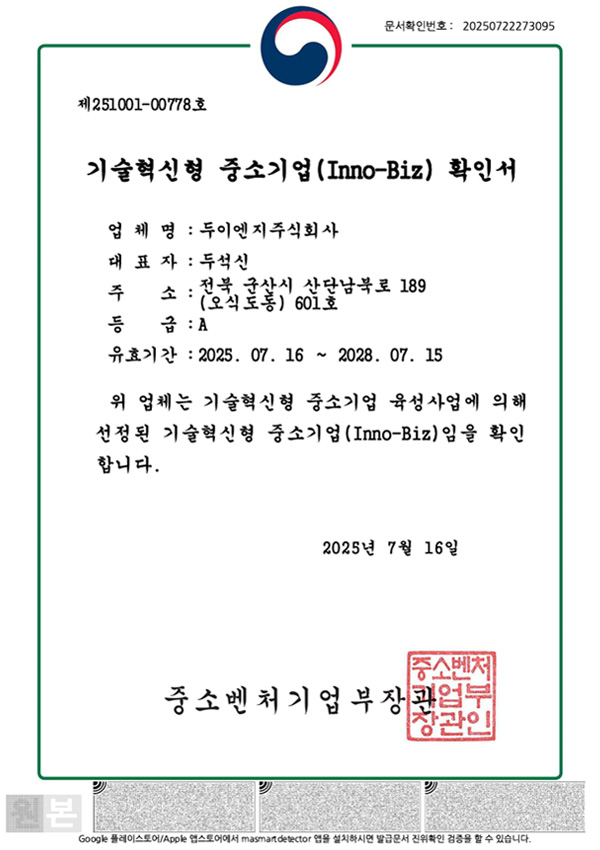 두이엔지(주) 홈페이지에 오신 것을 환영합니다.